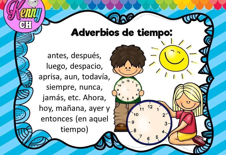 Aportan datos cronológicos para ubicar temporalmente a la acción, que logra acontecer en el pasado, presente o el futuro. Por ejemplo: mañana trabajaré mejor.